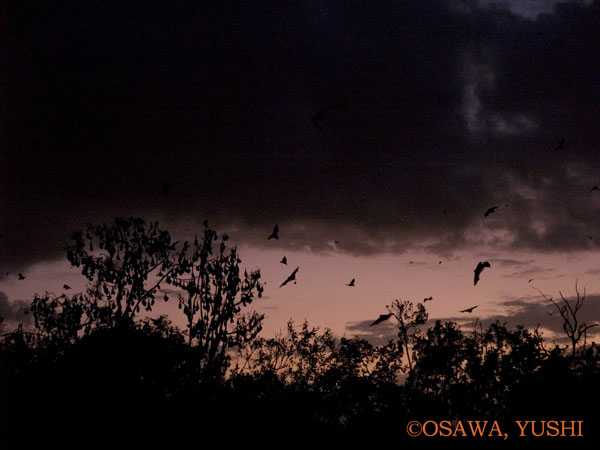 06A A226392 クロオオコウモリ(Black flying fox)Pteropus alecto, オーストラリアオオコウモリ(Little red flying fox)Pteropus scapulatus オーストラリア クイーンズランド州 ハービーベイ E-300