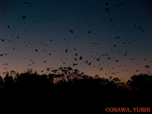 06A A256594 クロオオコウモリ(Black flying fox)Pteropus alecto, オーストラリアオオコウモリ(Little red flying fox)Pteropus scapulatus オーストラリア クイーンズランド州 ハービーベイ E-300