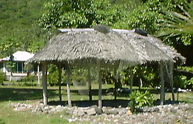 伝統的なサモアの家は、ファーレと呼ばれる。サンゴを積んだ床に木の柱と椰子やアダンで葺いた屋根だけからなり、壁がないのでまったくの素通しである。当然中はすべて丸見え、プライバシーはない。もともと集落は近親者が集まって住んでいるので、お互いにすべてを知った間柄なのだろう。ツツリア島の端の方の山中を走っているときに、木々に隠れるようにしてこういった伝統的なファレをいくつか見た。