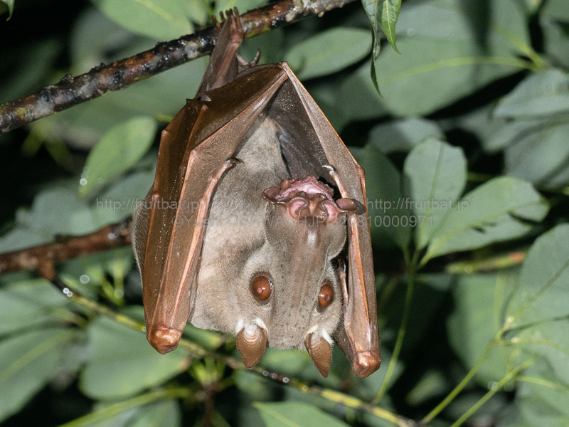 18時にウマヅラコウモリを見に行く。今日は昨夜より南西に100mほど離れたところで盛んに鳴いている。人家のすぐ脇を通ってゴム林を抜けた先の森だ。僻地とはいえウマヅラコウモリは人里のコウモリなのだ。真っ暗な森の中あっちでもこっちでも「クォッ、クォッ」という声が降ってくる。オルトリンガムの表現からオスが川に面した木立に沿って並んで鳴く姿が対岸から眺められればいいなと思ったのだが、なんとレックのまっただ中にいるのだ。翼をバタバタ盛んに羽ばたかせて、クォッと声を出すたびに体をひきつけるような動作をする。テングコウモリやヤマコウモリを調査で捕獲したときに体中の筋肉をつかってこういう動作をするがそれと似ている。今夜のレックは昨日より開けた森で、コウモリが見やすく、鳴いてない個体もあちこちにいるのがわかる。飛んでいる個体もいる。