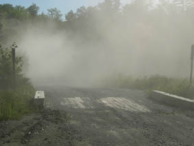 メイン州は89%が森林に覆われています。1998年度版のMOON TRAVEL HANDBOOKシリーズのMAINE HANDBOOKというガイドブックでもメインの二大産業は、TourismとForest Productsとなってます。 時々狭い林道を巨大な木材運搬車がびっくるするようなスピードを出して、走っていきます。 そのあとはしばらくこの通り。