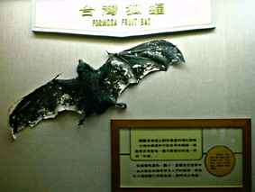 まずは空港前のビジターセンターへ寄る。緑島のなりたちや名前の由来、島の生物の紹介などの展示があり、臺灣狐蝠の模型があった。緑島の紹介ビデオを見る。海の生物の映像が中心である。