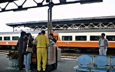 台東駅は地方の素朴な駅という雰囲気である。ここから台北まで自強号(特急列車)でいく。全席指定で、席は取りにくいと聞いたが、窓口で難なく買えた。約300kmが6時間ほどで1人815元。ガイドブックで見た自強号はなかなかしゃれていたが、区間によって車両が違うようで、臺灣の東側を走っている自強号は少々くたびれた車両であった。ドアは自分で開けて乗る。9時45分、定刻より少々遅れて台東駅を出発。乗車率は3割くらいですいている。