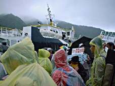 7時30分前後に港を出る船は計4隻、桟橋周辺は降りる人乗る人であふれている。おまけに急に雨が強くなり、さらにごったがえす。船はほぼ満員である。例の台東で買った酔い止めはききすぎるので、さらに量を減らして、今度は錠剤の方も二つに割る。これで完全に二人で1人前だが、それでも船中は熟睡。1人分を完全に飲んだら、目が覚めなくなってしまいそうだ。