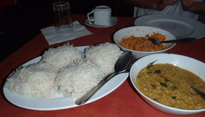Today's breakfast was dal curry and string hopper, a kind of noodle.