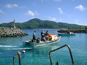 対岸のアウアシという集落との間を小さな双胴船が行き来している。港の前の売店で、どうやってあの島に渡るのかと聞こうとして"How"と言ったら、待っていれば船が来ると返事があった。楽な英会話だ。1人1$で所要時間は10分ほど。特に運行ダイヤなどないようだ。数人お客を乗せてきては、すぐに折り返していく。