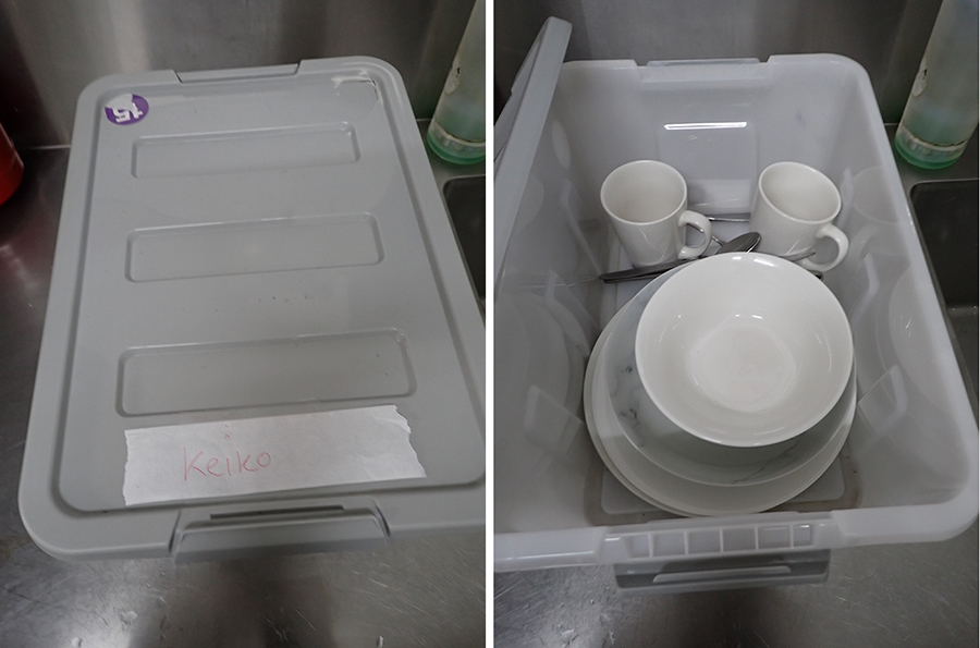 滞在したジャングルハットばれる棟は高床式で壁は防水布、電源コンセントは無し、扇風機はあるけれどエアコンはなし、wifiもなし、あるのは蚊帳つきのベッドと鞄などを置くベンチのみというシンプルなロッジで、二部屋が一棟になっていて、われわれは奥の部屋だったが手前の部屋だとバルコニーを通る奥のお客さんの足音やすぐ外の砂利道の足音が響くのではないかと思う。虫、鳥、動物の鳴き声が絶えず聞こえる。トイレ、シャワーは部屋にはついてないけれど、バルコニーの階段を降りて10mほどのすぐ目の前にある。ドアは網戸がはまっていて電気をつけると外から見える鍵はない。幸いにしてわれわれは2部屋一棟の奥の部屋だったから目の前を通る人はいないが。、シーツやリネン類・タオル類は用意されている。自炊用台所と営業時間の限られたカフェのある共用エリアにはwifiと充電ステーションがある。お皿やカトラリーのセットも貸してくれる。シャワー利用は午前7時~12時、午後5時~10時に時間制限あり、部屋も充電ステーションも正午~午後5時午後10時半~朝7時には電気が使えない。