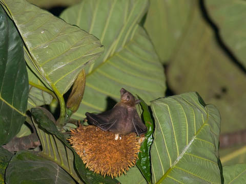 木が大きすぎてコウモリが遠いのが難点だ。ちょうどジャックフルーツの種をはき出したところだ。