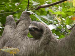 ノドチャミユビナマケモノには2回であった。ナマケモノは一日に20時間眠り、30mしか移動しないとガイドはいっていたけど、その目の前で活発に動いていた。