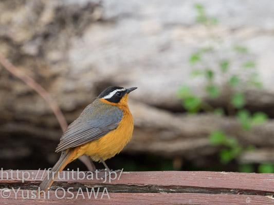どことなくアメリカンロビンを思わせるマミジロツグミヒタキWhite-browed Robin-chat Cossypha heuglini。