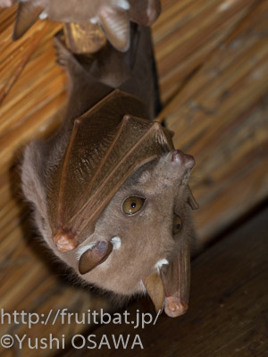 キャンプ場のゲートは夜の間は閉まって、夜や早朝のツアーにいくサファリカー以外は出入り禁止となる。ゲートが閉まる時間はパンフレットに寄れば17時半のはずだが、ゲートの表示では16時半になっている。追い出されても困るので早めに帰って、あとは売店の軒下にいるケンショウコウモリを観察・撮影する。飛びたつようすが見られるかと期待したのだが、日没後だいぶたってもまだ残っている個体がいた。あいにくクルーガー国立公園にはピーターケンショウコウモリEpomophorus crypturusとワールブルグケンショウコウモリEpomophorus wahlbergiが記録されていて、どちらであるかは捕獲して奥歯を調べないと識別できないということでどちらだか確定はできなかった。