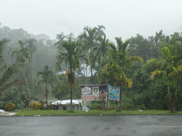 国立公園から空港への送迎は地元の人が自分たちの車を使って行っている。行きは飛行機が着くと空港に車が待っていたが、帰りは国立公園の前には誰もいない。2軒先の左側にある家でやっていると掲示があったので行ってみたが、今車がないという。国立公園前に止めてあるあの黒い車に頼めという。運転手がいないのでしばらく待っていると、自転車に乗った旅行者が通りかかって、「車がないのなら、ホテルに戻ってタクシーを頼んであげましょうか。」と声をかけてくれたが、急いでいないのでことわる。この人も同じ13時15分発のクチン行きに乗ることがわかった。近くにマリオットというリゾートホテルがあってそちらのお客さんらしい。リゾートホテルは空港送迎があるし、まだまだ時間には余裕があるので、最後の朝をサイクリングしているようだ。