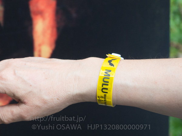 国立公園では5日間30リンギットのパスを買うことになるのだが、われわれの滞在は6泊7日と半端なので10日分のパスを二人分120リンギットで買うことになる。最初5日たったらもう一度受付に払いに来いといっていたのだが、なぜかその後10日分いっぺんに買えることになった。受付で終了日によって異なる色のバンドを腕に巻いてもらって、滞在中はずっと寝るときもシャワーを浴びるときもつけたままでうっとおしい。うちの猫は首輪を嫌がるのであきらめたけれど、猫の気持ちがわかる。それともバンドを着けられたコウモリの気持ちか。
