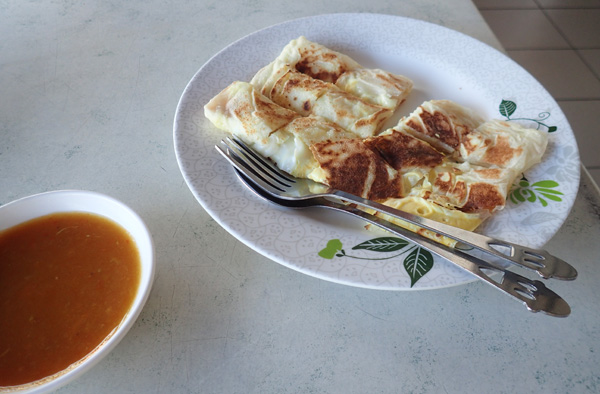 マレーシアに行ったら食べたいのがRoti Canai歩いて5分強の食堂街で見かけたので17日の朝ごはんに食べに行く。