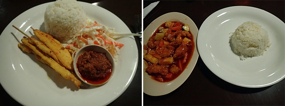 夕方17時すぎから大雨と雷。この日は19時からのナイトウォークを予約していたのだが、雨はやまず集合場所の受付に行ってみたら、今日はできないので、明日の19時30分に振り替えるという。食堂でサティと魚を揚げた酢豚のようなものを食べて戻る。